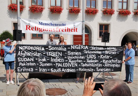 Dank sagten sie dem Arbeitskreis Religionsfreiheit Neumarkt mit Pfarrer i. R. Ernst Herbert an der Spitze für die erhaltene finanzielle Unterstützung. Peter Bolz und Christine Emmerling verlasen die Namen der 30 schlimmsten Verfolgerländer angeführt von Nordkorea. Somalia und Ägypten.
